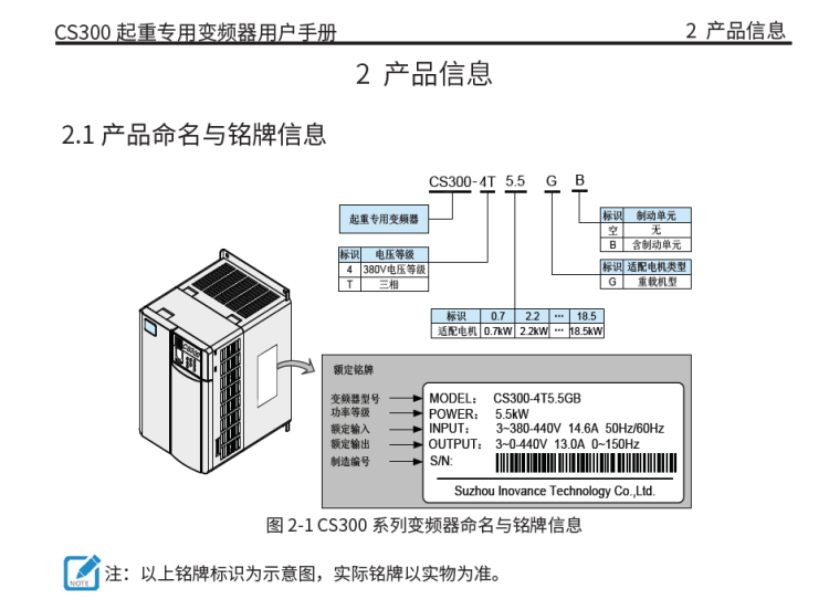 匯川CS300系列變頻器型號注釋:
