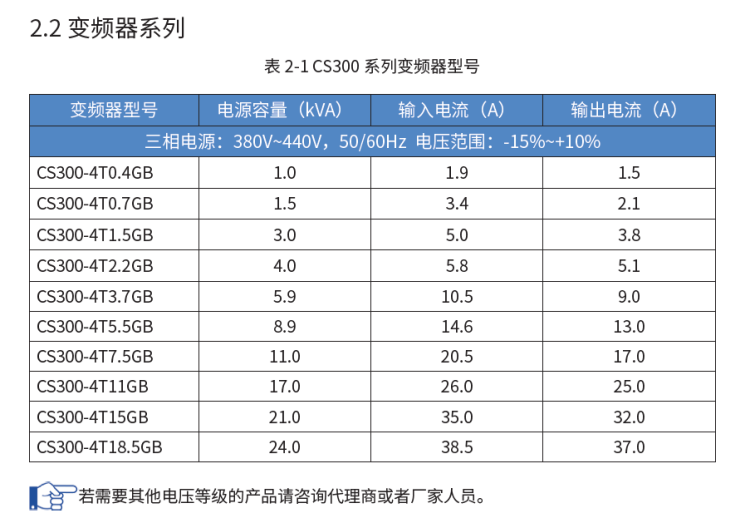 CS300系列變頻器型號-容量-輸入電流-輸出電流: